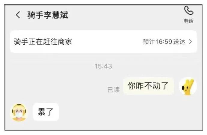 之前有个高校老师跑去体验外卖,和骑手有一段简单的对话。几行字在平静中隐藏着情绪的电闪雷鸣,堪比一部现实主义戏剧的开头: