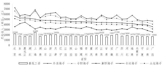 中国新就业形态研究中心的调查显示,全国骑手工资水平的均值水平稳定在5000元左右,各省市外卖骑手的月均收入都高于当地的月最低工资标准。