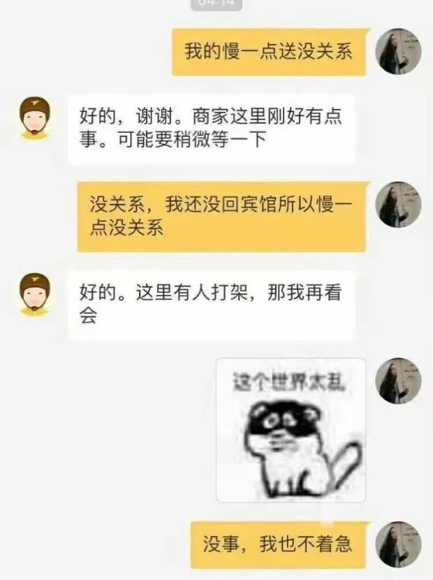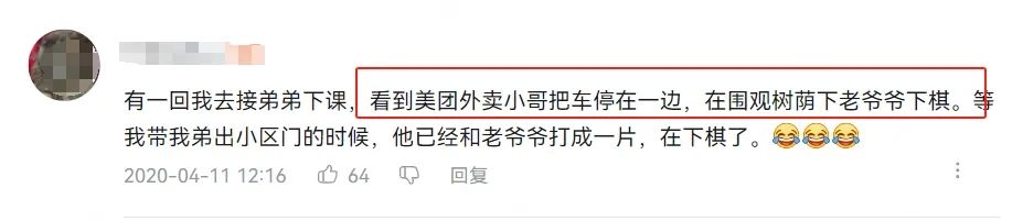 再比如说,商家出餐慢,爱热闹的小哥就跑去看人打架、看老爷爷下棋。