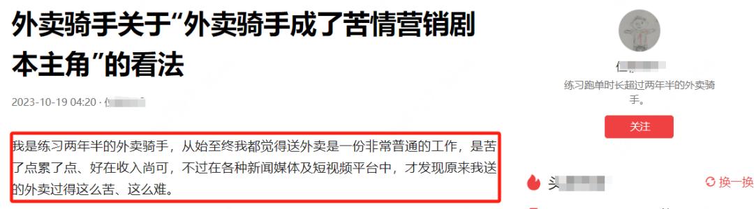看多了的人都明白,流量铁律里,骑手的悲惨程度与话题热度成正比,骑手地位的高低与互动频率成反比。