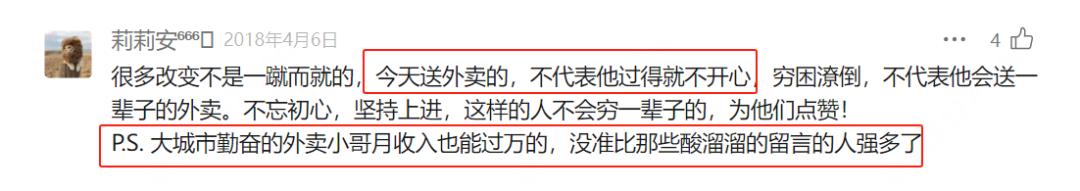潜台词是,送外卖低人一等,做错选择自作自受。