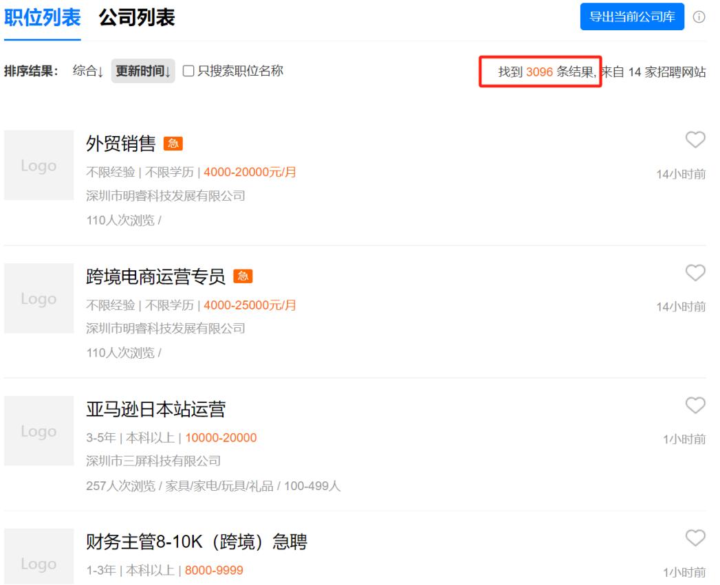 就在今天的深圳,跟“跨境电商运营”“亚马逊运营”有关的结果达到了3096条。