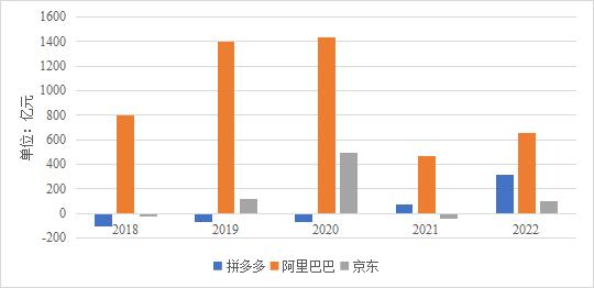 图1:2018-2022年拼多多、阿里巴巴&京东净利润对比图 资料来源:穆胜咨询整理,拼多多、阿里巴巴&京东财报