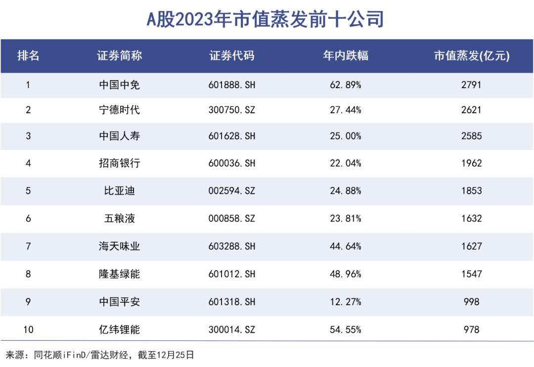 截至2023年12月25日,宁德时代年内跌幅超过27%,2621亿市值蒸发,相当于一个泸州老窖,两个中国联通,或者三个云南白药的市值体量。