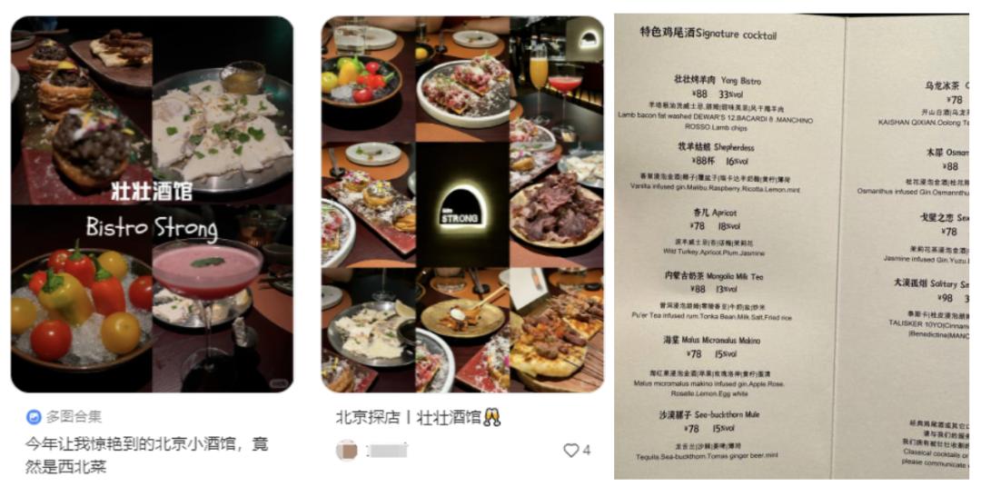 这个增长空间里正在涌入越来越多的玩家。虽说bistro盈利大头在卖酒,但随着行业越来越卷,能吸引人来喝酒的下酒菜也变得愈加重要,更有噱头的中式创意菜几乎是自然而然成为了热门选择。