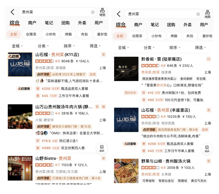在大众点评上搜索一下贵州菜,家常风味馆子和bistro已是平分秋色。