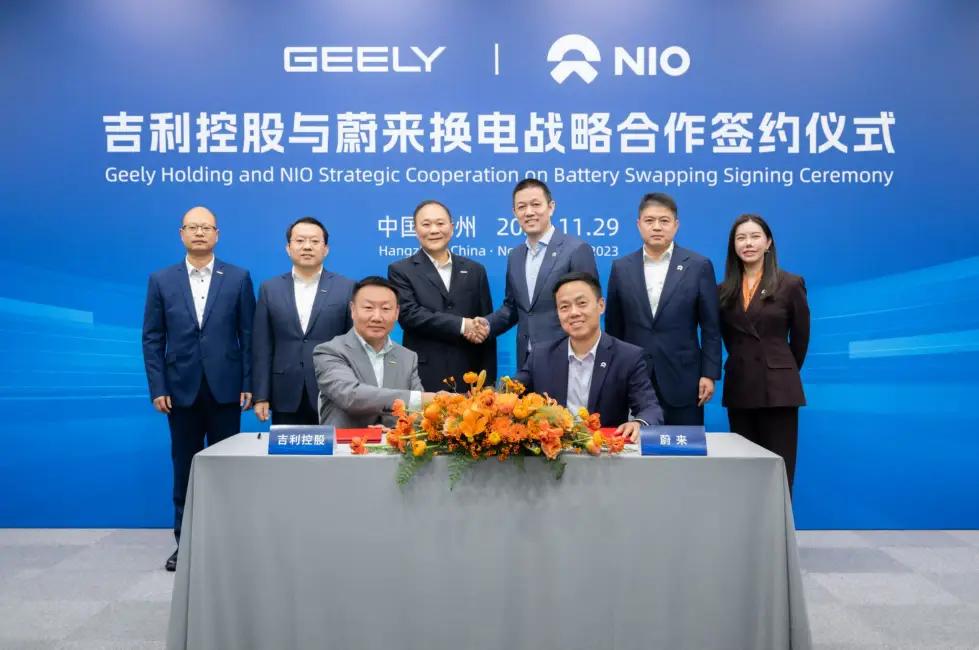 吉利和蔚来的换电战略合作,按照签订的协议内容,双方将通过“共投、共建、共享、共运营”模式,携手打造“私家车”和“营运车”两大换电标准体系,加速推动车端、站端、电池端、运营端连通协同,扩大换电网络规模,为不同需求的用户提供更便捷、更安全、更完善的服务。