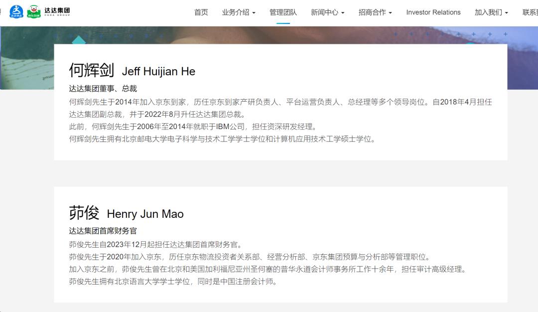 同时,达达的首席财务官陈兆明也辞任,由负责京东物流投资者关系部的茆俊担任公司首席财务官。