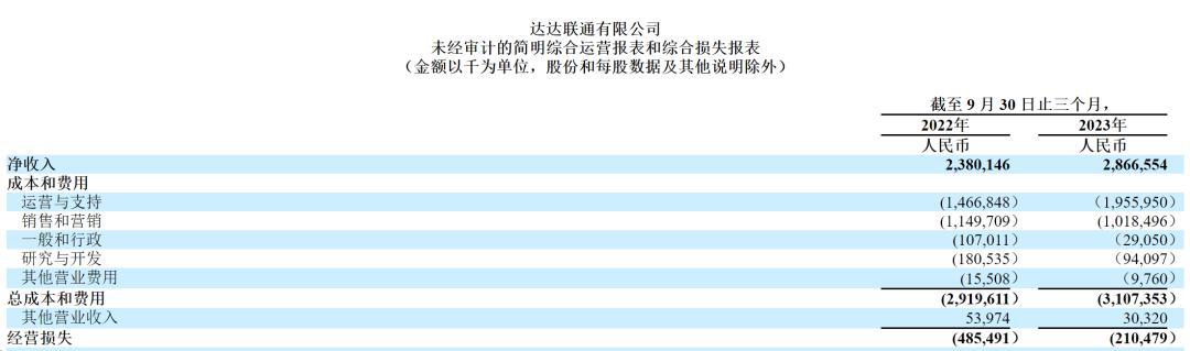 ( 成本费用的示例,截自达达财报三季报 )