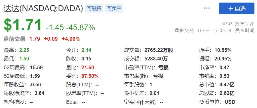 京东控股的达达集团股价,一日跌去 45.9%,近乎腰斩。