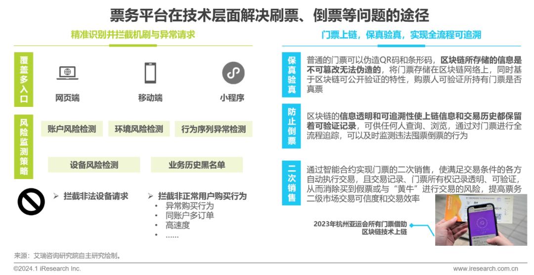 一些“黄牛”研发了专门用于抢票的软件,通过自动化脚本可以在极短时间内自动化完成填写信息、选择、提交和支付等流程,随着其攻击技术不断升级,票务平台应建立起精准识别、智能对抗、实时拦截的防御机制,拦截非法设备请求与非正常用户购买行为。现场演出票务产品作为限量发售的稀缺品,与区块链不可篡改、可追溯等特性天然契合,区块链+票务可以对每一张门票进行从生成到使用的全流程追踪和监督,实现全链路电子化门票管理,有效规避假票问题。
