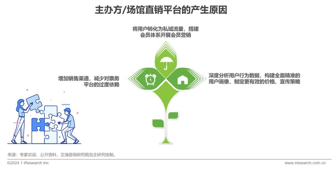 主办方/场馆直销平台占比逐渐增加,从票务分配比例来看,其大概挤占了聚合票务平台10-15%的市场份额。主办方或场馆建设票务直销平台的主要目的是将用户转化为私域流量,搭建会员体系开展会员营销,并且通过对沉淀在自有平台上用户行为数据的深度分析,构建全面精准的用户画像,制定更有效的价格、宣传策略。