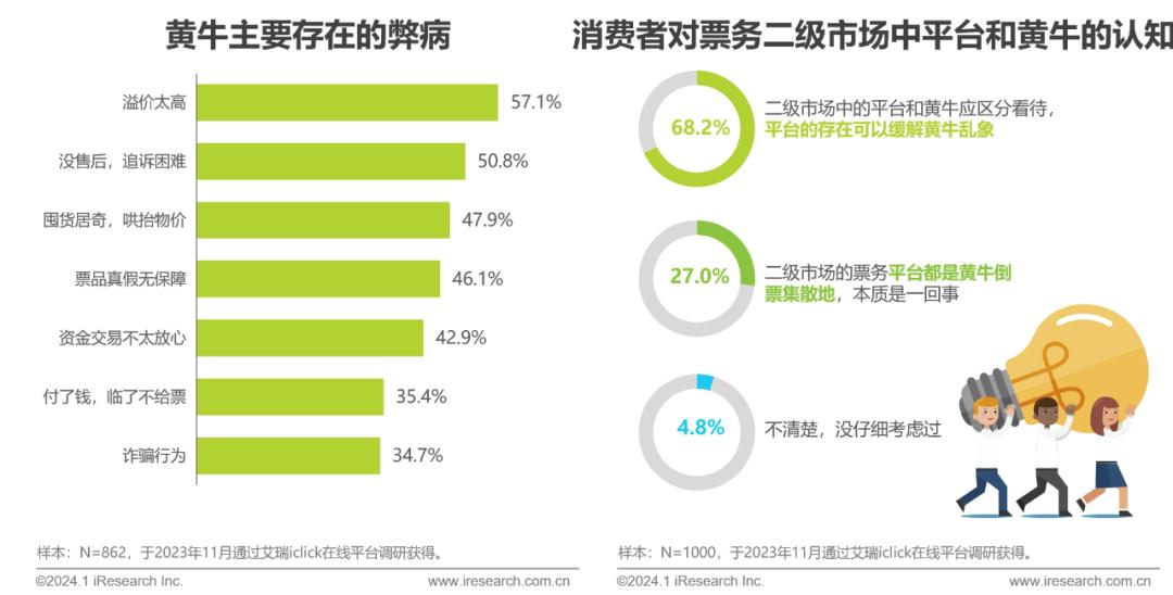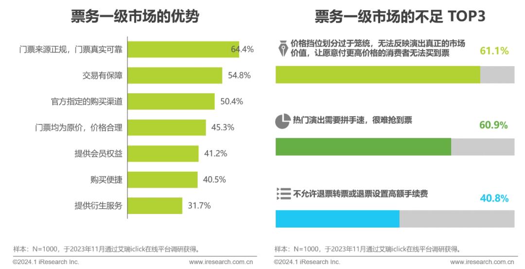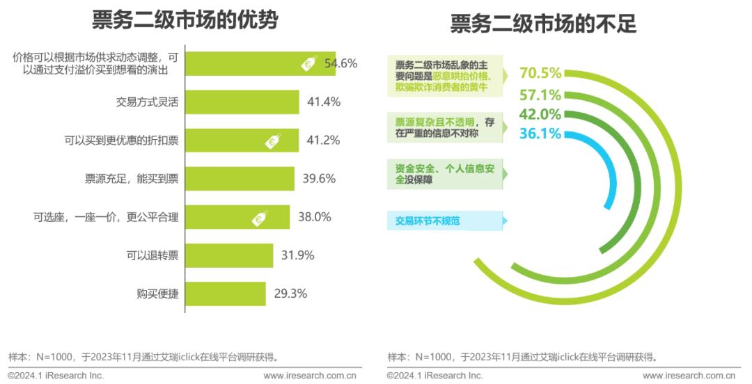 消费者认知与使用感受:票务一级市场的核心优势在于门票真实性有保障,然而单一定价机制提高了热门演出的抢票难度;其次,票务一级市场的退转票政策的短板也较为突出。消费者普遍认可二级市场的动态定价机制,但主要苦于恶意哄抬价格的黄牛。