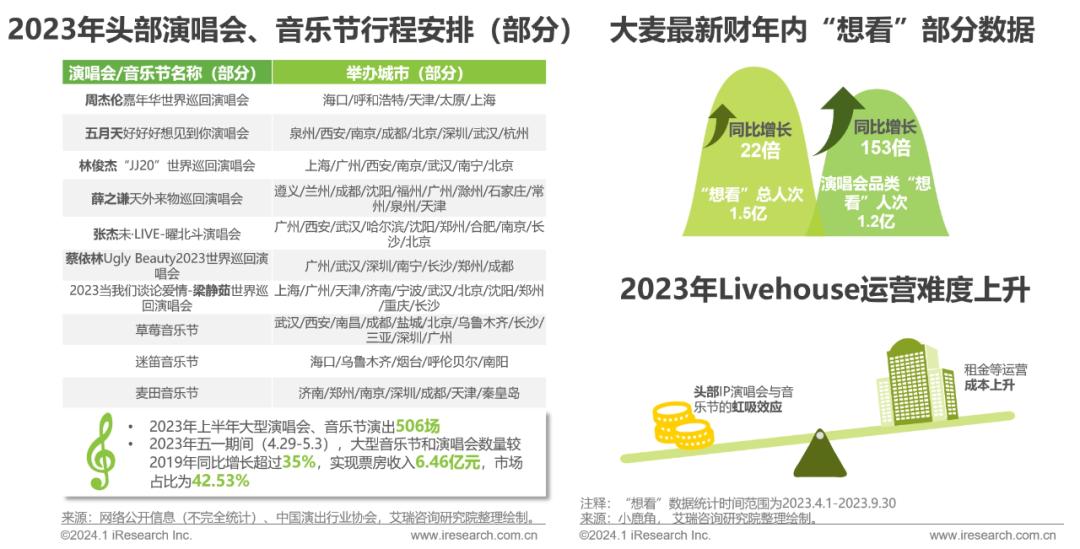 头部热门演出呈现超强吸金能力,小型演出活动热度降低