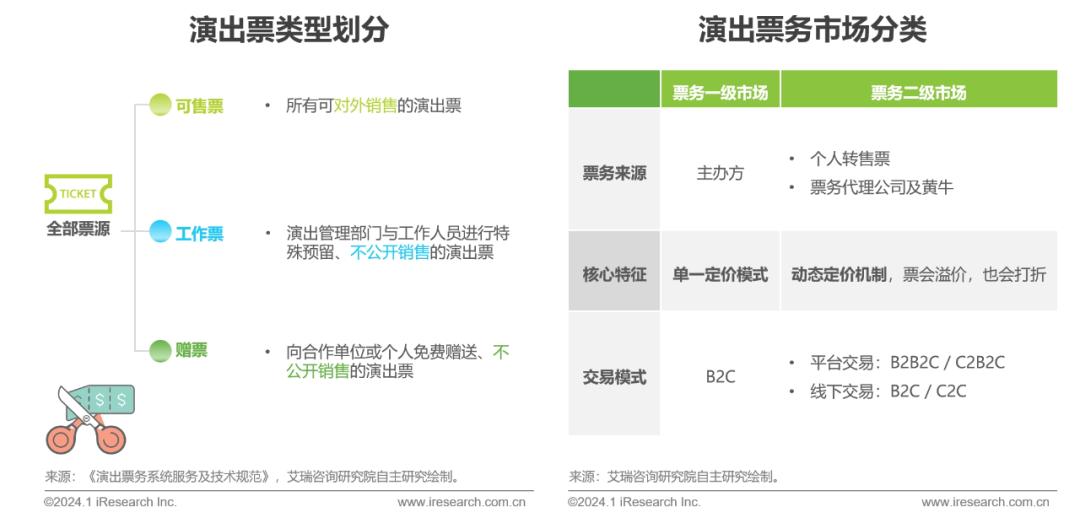 我国演出票务市场可分为票务一级市场和票务二级市场。票务一级市场采取不溢价不打折的单一定价模式,其主要作用是售票、出票和检票,票源来自主办方,保证门票真实可靠;在票务二级市场,价格根据市场调节,票源更加复杂,包括个人转售票等,消费者可在线下直接联系卖家(转售个人、票务代理公司、黄牛等),也可通过平台提供的撮合中介服务达成交易。