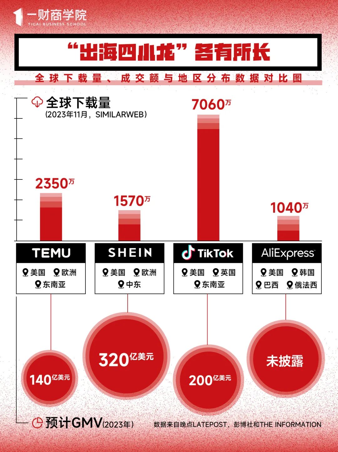 全托管模式使Temu在推出后,商家数、商品数和海外用户数增速惊人,很快被“出海四小龙”中另外三家(速卖通、Shein和TikTok Shop)效仿。除了全托管,平台们根据不同商家的需求,很快又推出程度不同的“半托管”模式。例如2024年1月初阿里国际站上线的半托管服务,介于商家完全靠自己运营和完全靠平台销售之间,向商家提供专属营销活动、门到门物流履约和逆向退货方案,生产和销售则由商家自己负责。