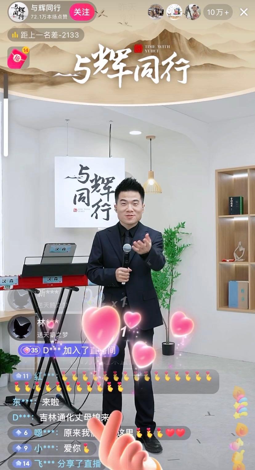 当晚“与辉同行”直播3小时后,直播间销售额就已经突破1.5亿元。整场直播持续4小时,直播间最高在线人数达170万,累计有5348万人涌入直播间,点赞量超过12.4亿次,直播间冲上带货总榜第一名、即时人气第一名。