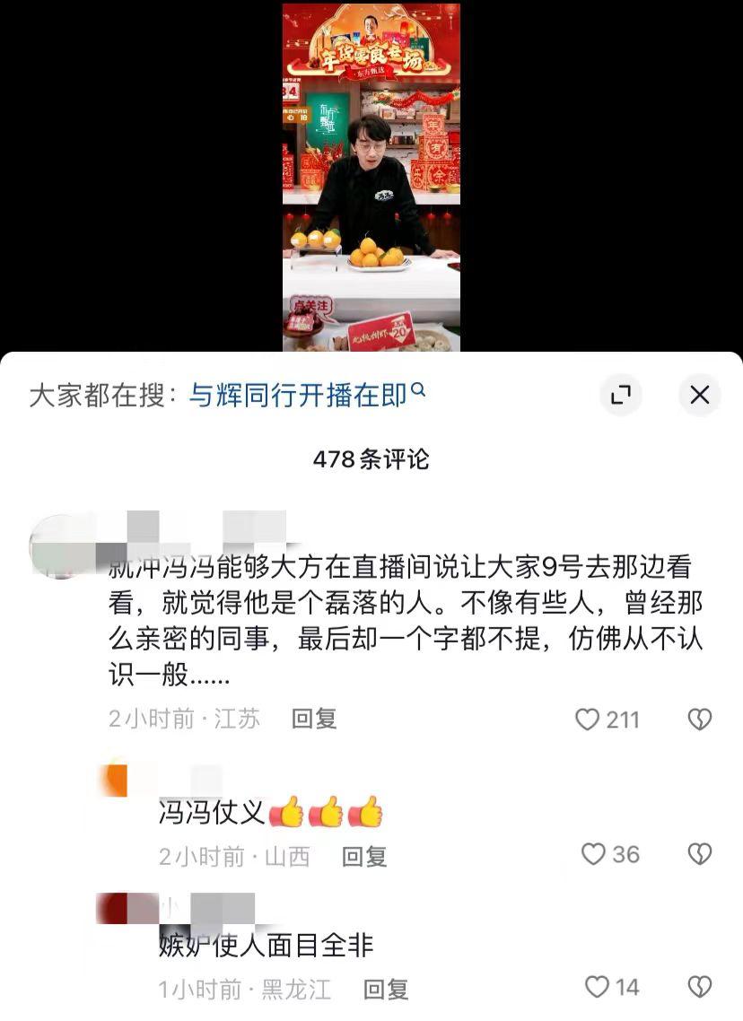 冯冯的行为引来部分董宇辉粉丝好感,“就冲冯冯能够大方在直播间说让大家9号去那边看一看,就觉得他是个磊落的人,不像有些人,曾经那么亲密的同事,最后却一个字都不提,仿佛从不认识一般。”