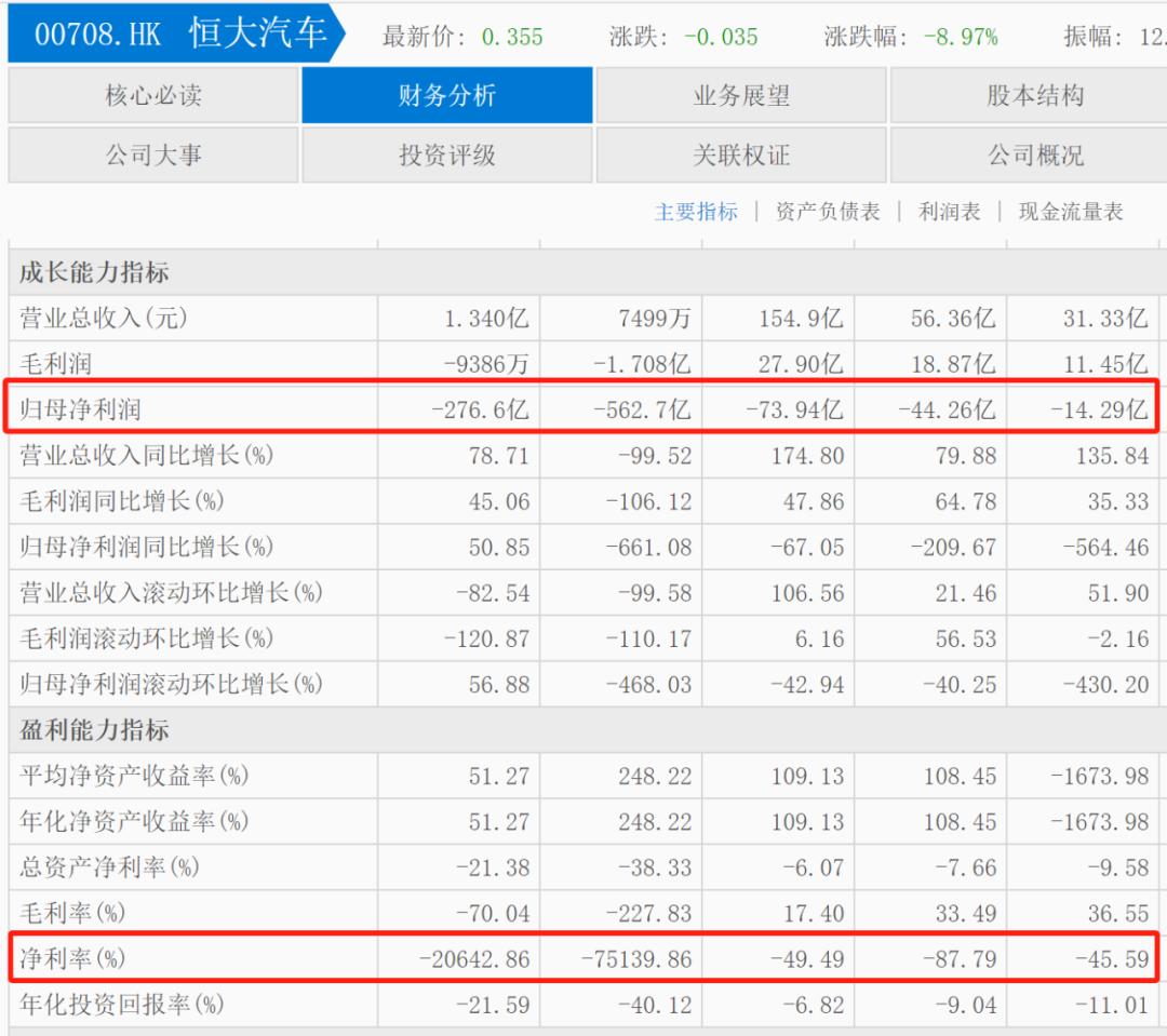 巨亏的恒大汽车