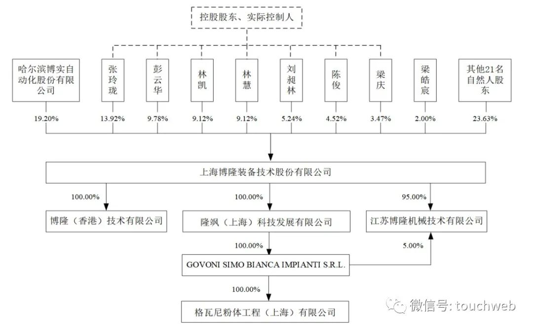 IPO前,博实股份持股为19.2%,张玲珑持股为13.92%,彭云华持股为9.78%,林凯、林慧分别持股为9.12%,刘昶林持股为5.24%,陈俊持股为4.52%,冯长江持股为4.02%,刘学红持股为3.94%,梁庆持股为3.47%,孟虎、李绍杰分别持股为2.98%,杨腾持股为2.69%。