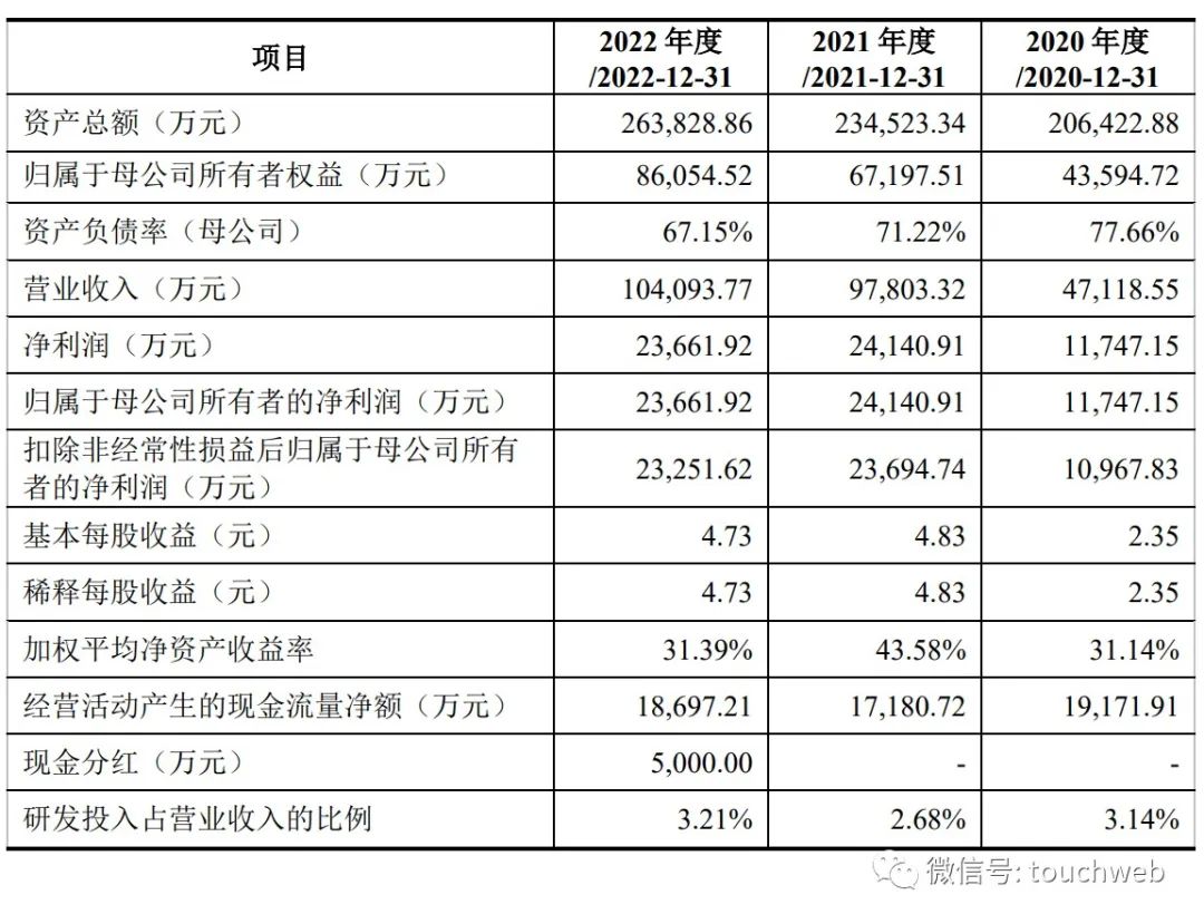 招股书显示,博隆技术2020年、2021年、2022年营收分别为4.71亿元、9.78亿元、10.4亿元;净利分别为1.17亿元、2.41亿元、2.37亿元;扣非后净利分别为1.1亿元、2.4亿元、2.3亿元。