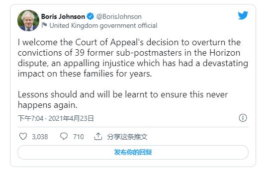 彼时,时任英国首相 Boris Johnson 对此也发表了自己观点,他称法院最初的定罪是“令人震惊的不公正。”