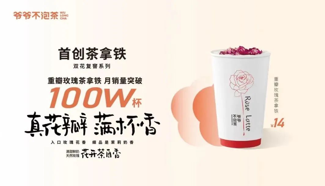 爷爷不泡茶是来自武汉的新中式香片茶饮品牌,五年时间,在武汉生根发芽走向全国,2023年高速发展到近300家店。