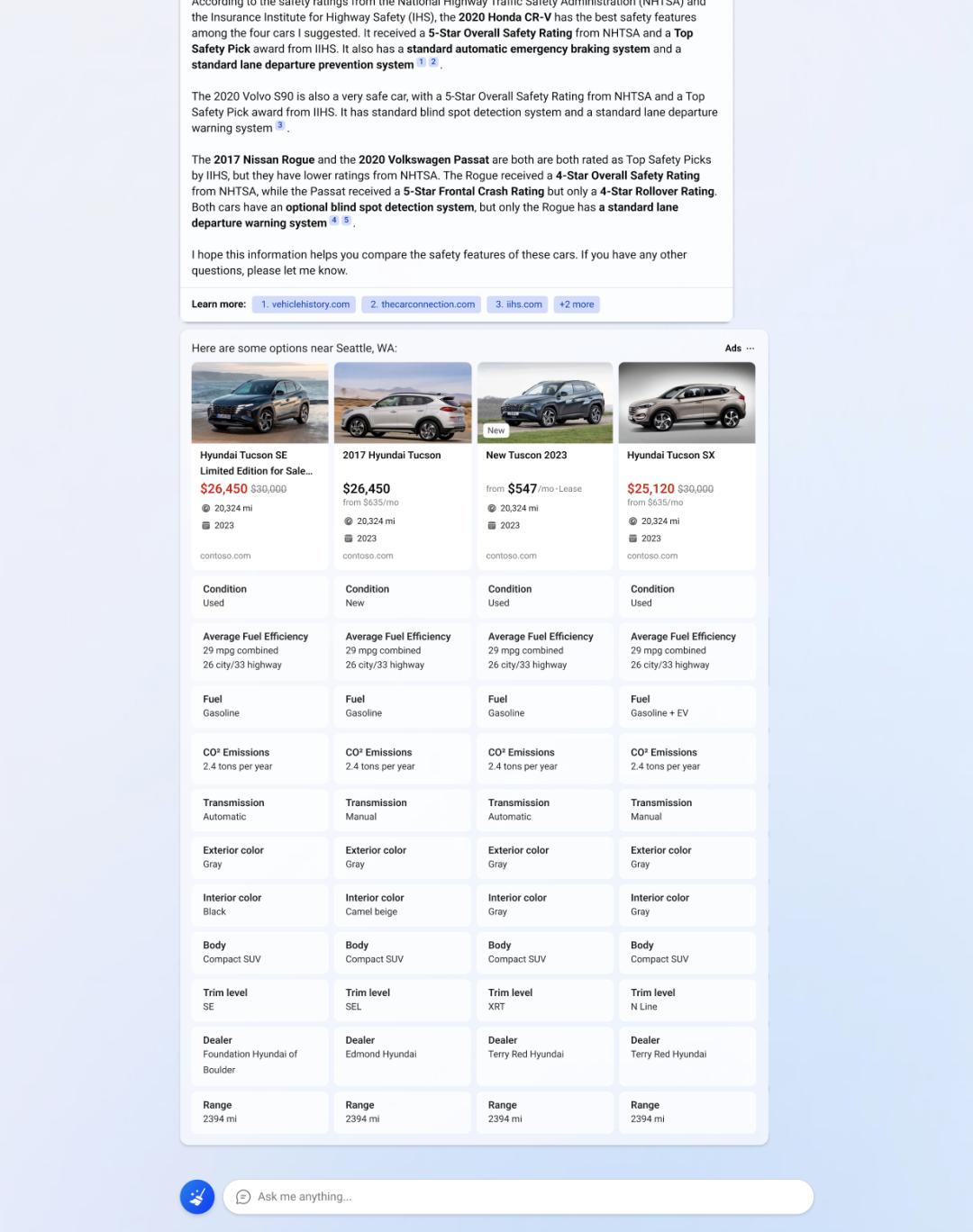 微软宣布即将推出首个会话式广告体验(Conversational Ad experiences)对比广告(Compare & Decide Ads)[5]