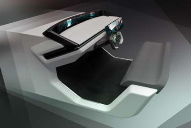 未启动时,显示屏看起来就像木质或金属表面,与汽车内饰融为一体。当传感器检测到手的时候,显示屏就会变成一个控制面板,为电动车窗、暖通空调系统和音响控制等内饰功能提供动力。