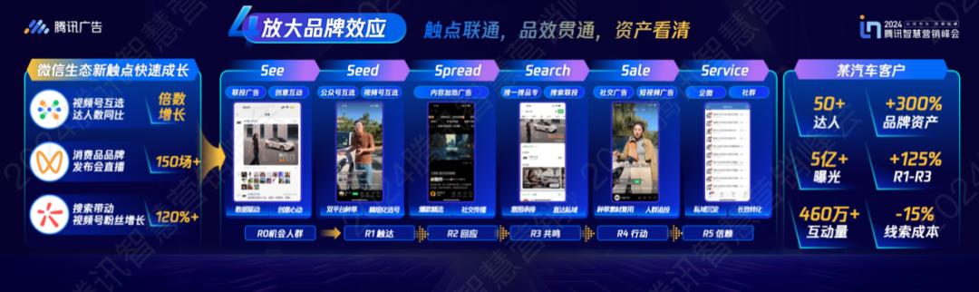 栾娜举例说,某汽车行业的广告客户,在通过腾讯广告投放了50余位达人之后,获得了超5亿次曝光,互动量达到460万次,品牌资产增加300%,这就是品牌效应放大的生动体现。