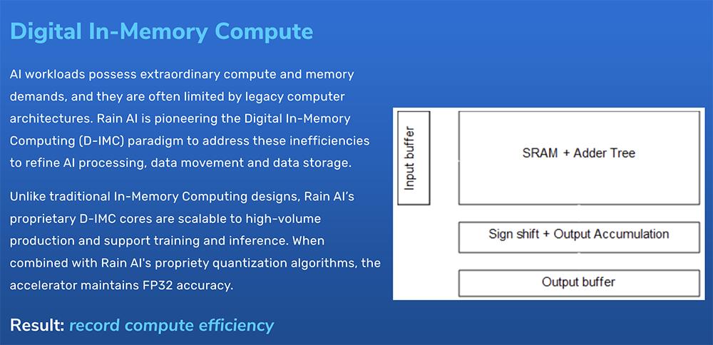 Rain AI在2021年推出可训练的端到端模拟AI芯片的工作原型芯片,近期的AI芯片产品则采用数字存内计算技术。截至目前,其累计融资金额约为4000万美元。