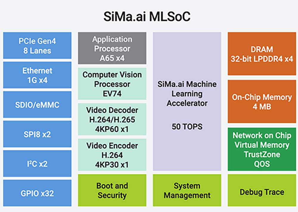 这家创企在2019年推出首款AI芯片组MLSoC,主要面向计算机视觉领域的推理计算。2023年6月,SiMa.ai称其第一代边缘AI芯片已开始量产,正与制造、汽车、航空等行业的50多家客户合作。