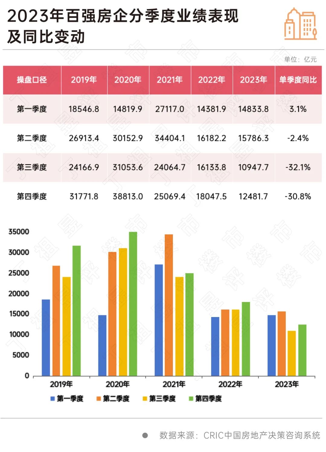 2023年中国房地产市场继续承压,整体仍处在低位调整期。特别是下半年以来市场基本处于低位运行,预期支撑不足、企业推盘积极性降低。虽然年底各大房企加大供货量和营销力度,但楼市复苏动能不足、销售端也未有明显起色。