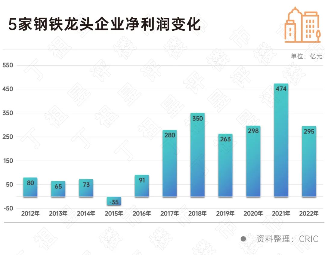 对比钢铁行业的发展,2015年前后,钢铁行业经历了一个大周期,据CRIC统计,5家钢铁龙头企业净利润在2015年为-35亿元。在当时钢铁行业的大周期中,出现了很多企业的淘汰与合并,在2015年之后,留下来的头部企业又开始进入爆发式的增长。