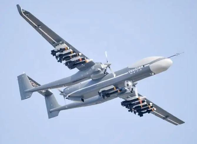 看看数据就令人咋舌:搭载三台涡轮发动机,拥有12个挂载点,最大起飞重量为2.8吨,最大巡航速度260公里,任务挂载重量达到1.2吨,满载航程可达8000公里,实际升限9500米,最长滞空时间为35小时。