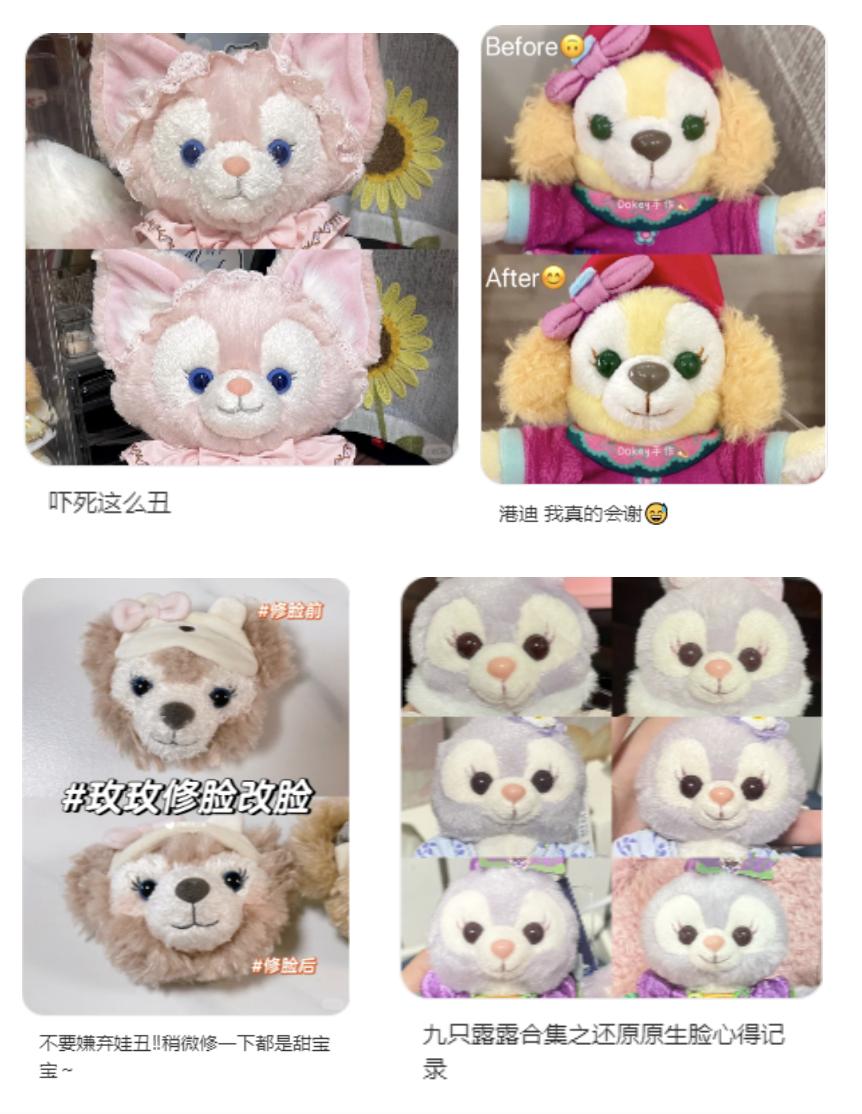 自己没有也没关系,在闲鱼和小红书上,都能找到接单改造的能工巧匠,可局部改可整体改,可以重新做脸也可以只是加个腮红,大改还有优惠。