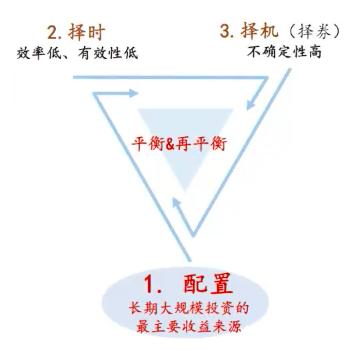 第一类,配置(配置收益),是长期大规模投资的最主要收益来源。有了配置,才能有效谈及长期稳定收益、风险预算与控制。