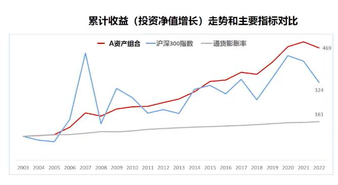 A资产组合所实现的稳定收益正是一个家办所需要做的。如果问A是什么组合,实现了大幅超越沪深300,那么解开谜底,A组合就是以稳健与保守为代表的社保基金组合收益率。看似保守,不够冒进,却通过稳健持续与复利增长,做了时间的朋友,赢得了胜负。