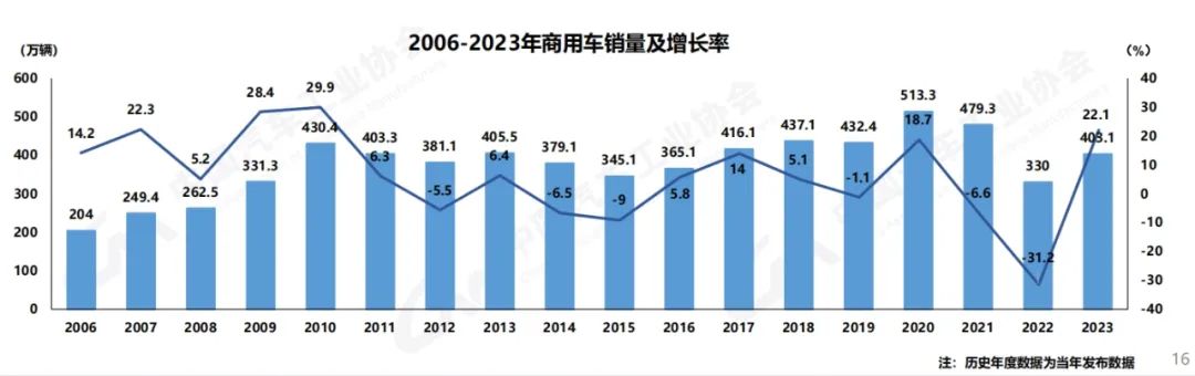 2023年,国内商用车市场受宏观经济稳中向好、消费市场需求回暖、各项利好政策拉动等因素影响,谷底回弹,实现了恢复性增长。