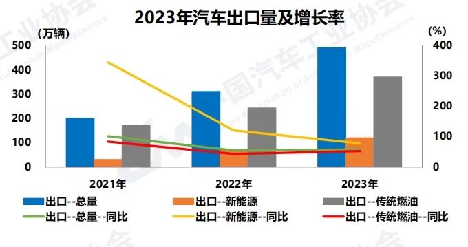 分类别看,传统燃料汽车出口370.7万辆,同比增长52.4%;新能源汽车出口120.3万辆,同比增长77.6%。