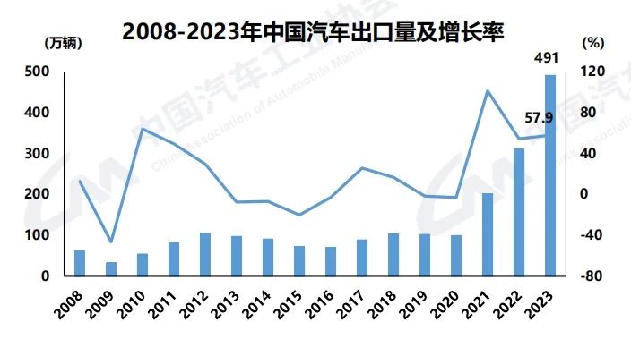 中汽协数据显示,2023年,汽车出口再创新高,达到491万辆,同比增长57.9%,对汽车总销量增长的贡献率达到55.7%。分车型看,乘用车出口414万辆,同比增长63.7%;商用车出口77万辆,同比增长32.2%。
