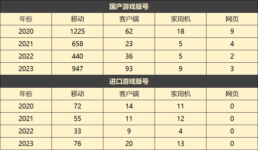 此外,家用机游戏版号共有22个,占比约1.9%,网页游戏只有3个,占比约0.3%。两类终端版号占比均与2022年持平,无明显变化。