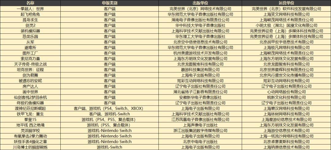 除了新的,年内还在1月、4月、8月先后放出了3批变更过审的版号,总数共40个。其中多数为改名或变更运营单位,有11个为原有终端版号基础上增加新终端版号,其中较知名的产品如网易的《巅峰极速》《逆水寒》,完美世界的《幻塔》《天龙八部2:飞龙战天》,雷霆《勇敢的哈克》等。