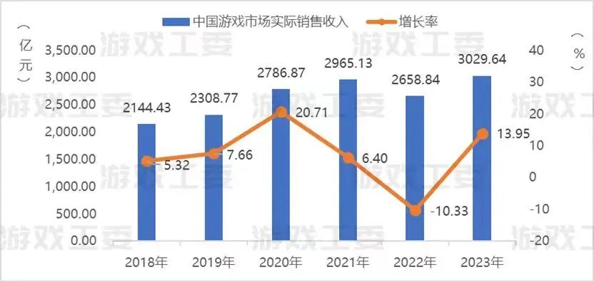 与此同时,游戏工委数据显示,2023年国内游戏市场实际销售收入约为3029.64亿元,达到历史新高,较2022年同比增长约13.95%。