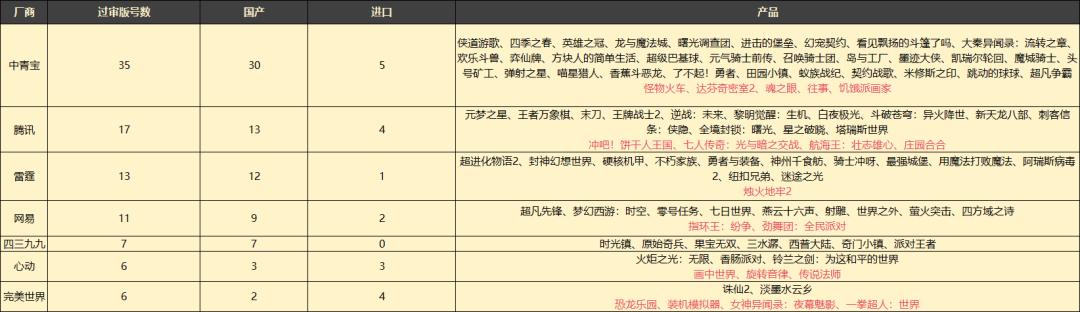 另外据部分厂商消息,本年度国产、进口游戏版号从送审到过审的周期均有缩短,其中进口游戏审批速度较2019至2021年时有明显提升,多在20个月以内审批完毕。原因,主要是多端产品同一版号申请增多,以及属地化管理、网游审核试点等举措的逐步实施。