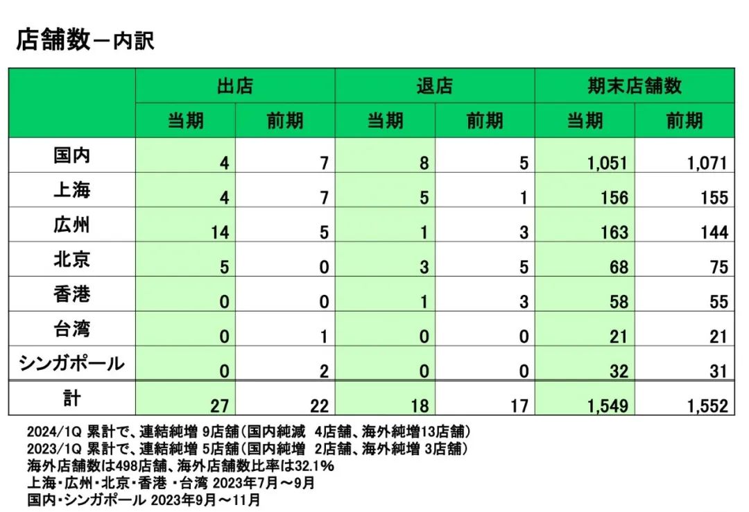根据最新出炉的财报数据,截至2023年11月末,萨莉亚全球门店为1549家,其中1051家店位于日本本土,在上海有156家,广州有163家,北京有68家,香港地区有58家,台湾地区有21家。