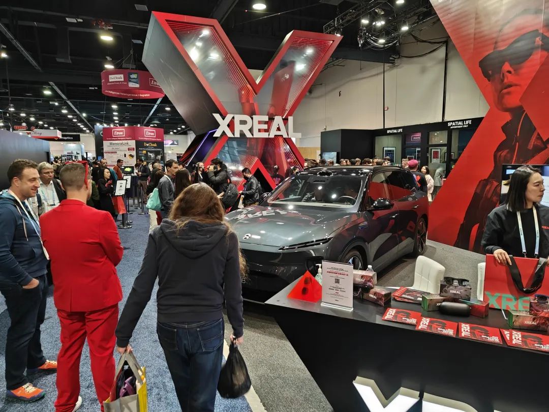 为了展示 AR 眼镜的车载娱乐效果, XREAL 还运了一台蔚来 ES8 来美国,放在展台上。