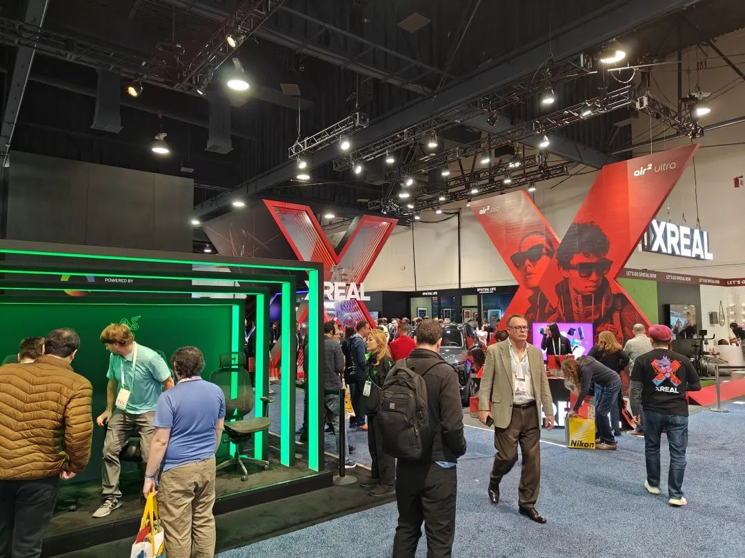 哦对了,差点儿就忘了——雷蛇展台的旁边,就是国内的 AR 眼镜XREAL ,两家的面积差不多大。