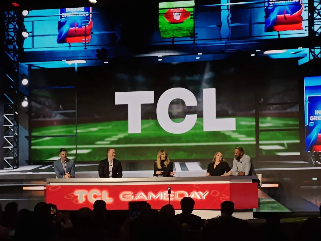 接下来是北美电视销量第二的 TCL ,他们也很懂北美市场,直接请了 NFL ( 美国国家橄榄球联盟 )的明星来站台。