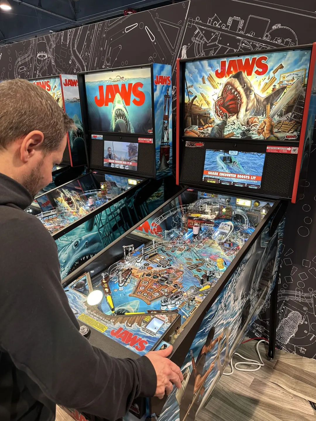 现场展出了这个大白鲨弹珠机,不仅设计非常还原,作为北美流行文化的重要组成部分,在现场也十分受欢迎。